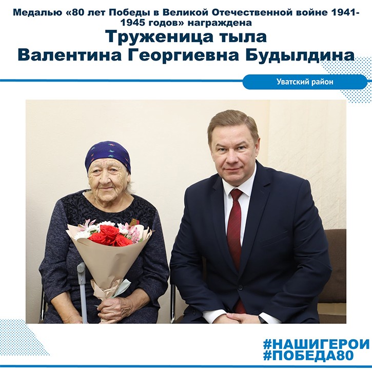 Труженица тыла Валентина Георгиевна Будылдина удостоена медали «80 лет Победы в Великой Отечественной войне 1941-1945 гг.», учрежденной Президентом России Владимиром Путиным.