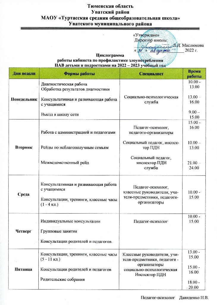 Циклограмма работы кабинета ПАВ