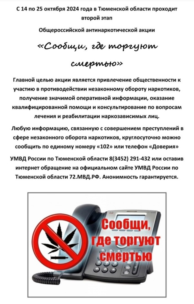 Всероссийская антинаркотическая акция " Сообщи,где торгуют смертью "